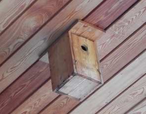 Komentar: gnezdilnica nameščena na spodnjo stran lege hiše je nedostopna za plenilce in vremenske neprilike. Sinice zelo lepo skrbijo za higieno v gnezdu in okoli gnezda, tako da ste lahko brez skrbi pred nesnago okoli gnezdnice.