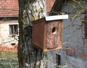 Gnezdilnica je skozi zadnjo stranico prvijačena z