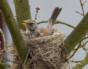 Gnezdo: dobro grajeno z blatom utrjeno gnezdo je narejeno iz trave, mahu, koreninic, postlano s suho fino mehko travo