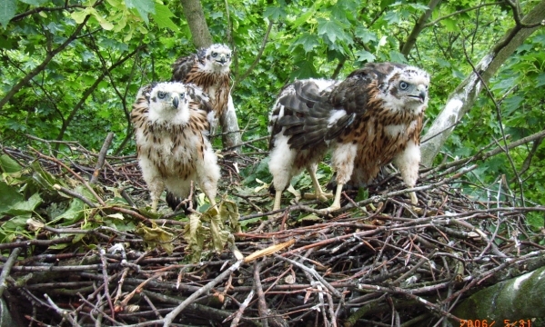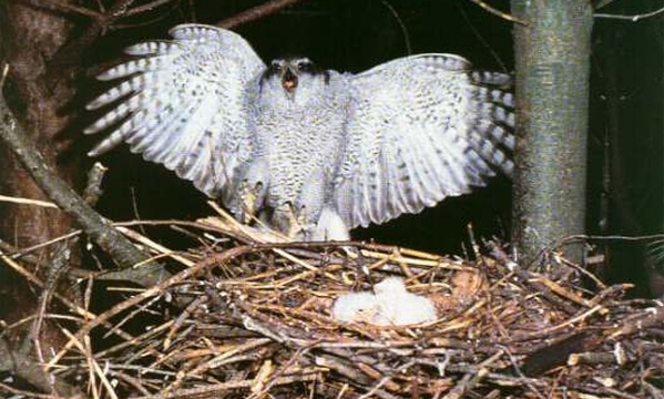 Gnezdo: veliko gnezdo s premerom 1 metra je narejeno iz vej, postlano z živalsko dlako