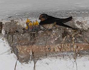 Komentar: lastovke rade uporabijo gnezdilne opore. Z leti gnezda lastovk zgubijo trdnost, zato podprto gnezdo nudi gnezdečim pticam varne gnezdilne pogoje. V podprtem zrahljanem gnezdu teža in prerivanje mladičev ne ogrožajo več živahnih mladičev.