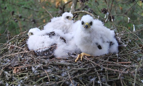 Gnezdo: je narejeno iz suhih vej, skromno postlano s travo in puhom. Gnezdo stisne k deblu 5 do 10 metrov visoko.