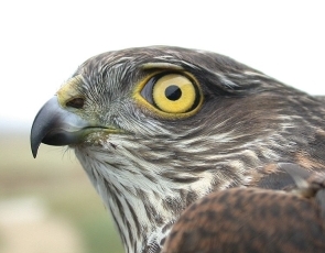 ![]() ![]() Šarenica pri samici je rumena Samec na plenu
