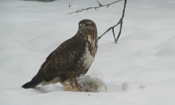 Kanja se na poljskem krmišču prehranjuje s poginulim domačim zajcem. Hrano preprosto položimo na tla, foto: Ivan Kogovšek
