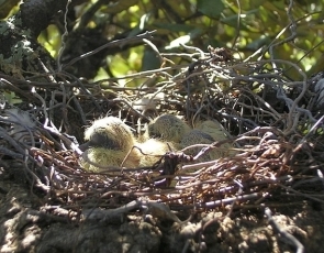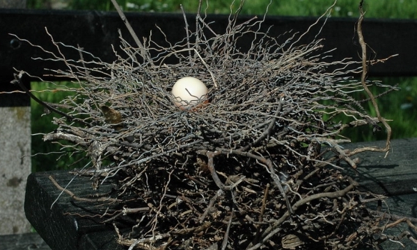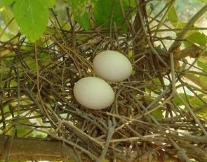 Gnezdo: skromno ploščato gnezdo je narejeno iz suhih vej